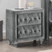 Showcase your personal taste with this bold statement piece in your bedroom. Fully upholstered in flannelette, this nightstand features padded fabric and crystal buttons. Each drawer handle is made of glistening acrylic crystals, while silver-painted cabriole legs are perfect in bringing in majestic vibes that this ensemble set out to do.