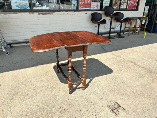Metal frame with wood top, needs refinishing or use a table cloth 48x30x30H