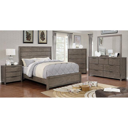 FOA WestThe combination of plank style construction and weathered barn finish in this bedroom set will help you create a casual, comfortable bedroom haven....