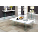 This end table pushes the boundaries of minimalistic design. A high gloss lacquer coated table top is held up by four tempered glass table legs. This is a truly one-of-a-kind set for the experimental individual or the modern inclined interior. Product Dimensions: 23.5"W x 23.5"L x 23"H