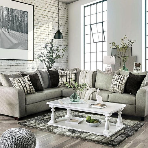 FOA WestThis highly attractive sectional will be the perfect centerpiece for your home. It's fully upholstered in soft fabric, from the cushions to the arm...