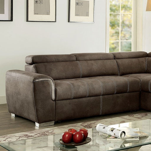 FOA WestContemporary Dark Gray Corduroy, Solid Wood, Others Pull-out Sleeper L-Shaped Design Reversible Chaise w/ Storage Track Arms