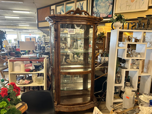 3074Curved glass front, ornate embellishments, 49x20x91H, hutch 80" and ornate piece 91"