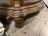 Curved glass front, ornate embellishments, 49x20x91H, hutch 80" and ornate piece 91"