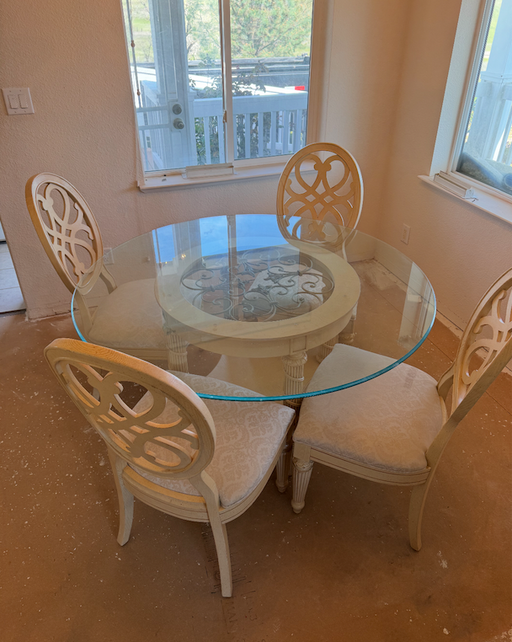 Original price $585.00Original price $585.00 - Original price $585.00Original price $585.00Current price $450.00$450.00 - $450.00Current price $450.00Beautiful glass top kitchen, dining, or patio, outdoor or indoor table with 4 chairs 33754