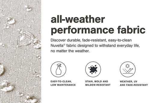 • Zippered cushions and throw pillows covered in high-performing Nuvella¬Æ fabric
