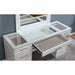 It's a gorgeous illuminated set. A beauty station that provides the right amount of space. With a multitude of drawers, the inclusion of a cabinet and open shelf make this an ideal setting for any preparing for a night on the town.