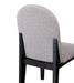 Matching chairs are upholstered in boucle fabric in beige, its softness and texture emphasizing the sharp angles of the back. The table and chair work in tandem to create a uniquely striking silhouette.